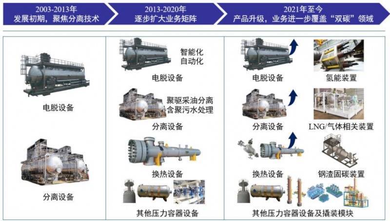 同时,公司多项具备自主技术的电脱产品率先完成研制,经鉴定达到国际先进水平,为公司构建了护城河,公司两项电脱设备被认定为国家重点新产品,已经连续多年在电脱盐电脱水压力容器设备市场的占有率位居国内第一、全球第三,成为名副其实的国内电脱设备行业领域的“隐形冠军”。